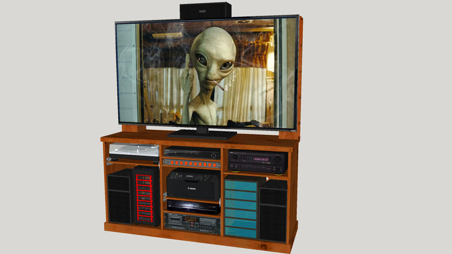 Great space to put some of my favorite records! Home theater with tv screen and speakers. Tv stand & stereo stand. Free shipping on orders over $35. An untextured model of an lcd tv on a cabinet stand with two stereo speakers on each side.